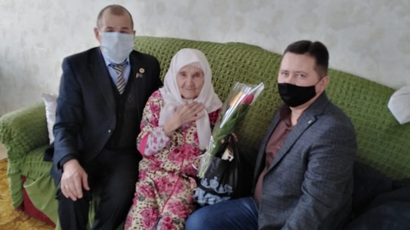 Представитель Дрожжановского района и Глава СП поздравляют труженник тыла с наступающим праздником 8 марта Низамутдинова Гадия Ханафиевна