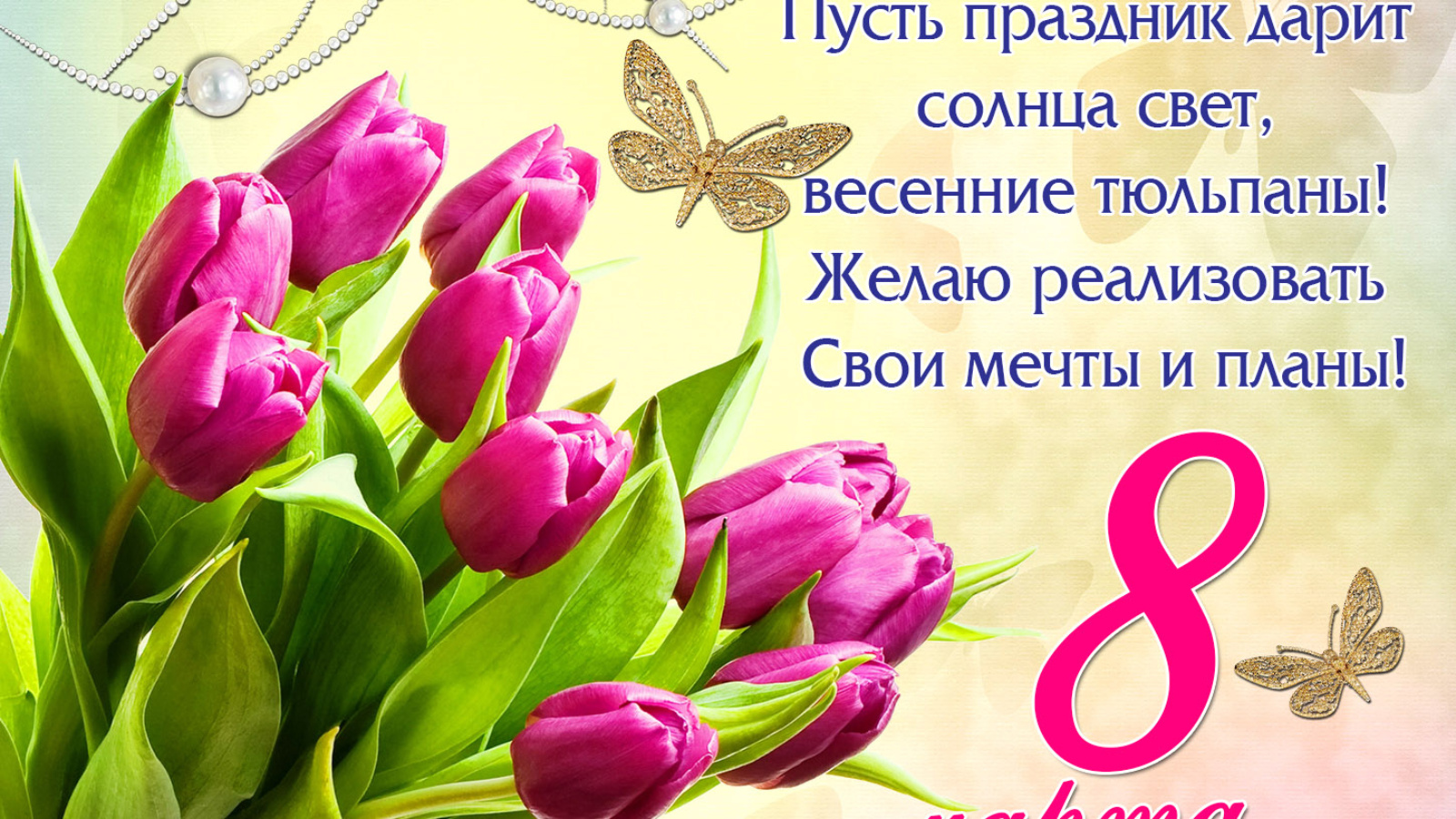 В этот светлый весенний праздник хочется от всей души поздравить с Международным женский днем и пожелать самых важных и бесценных вещей: здоровья, любви и простого человеческого счастья. Пусть дома всегда царит тепло и уют, пусть близкие и родные всегда будут рядом, пусть жизнь будет полна радости.