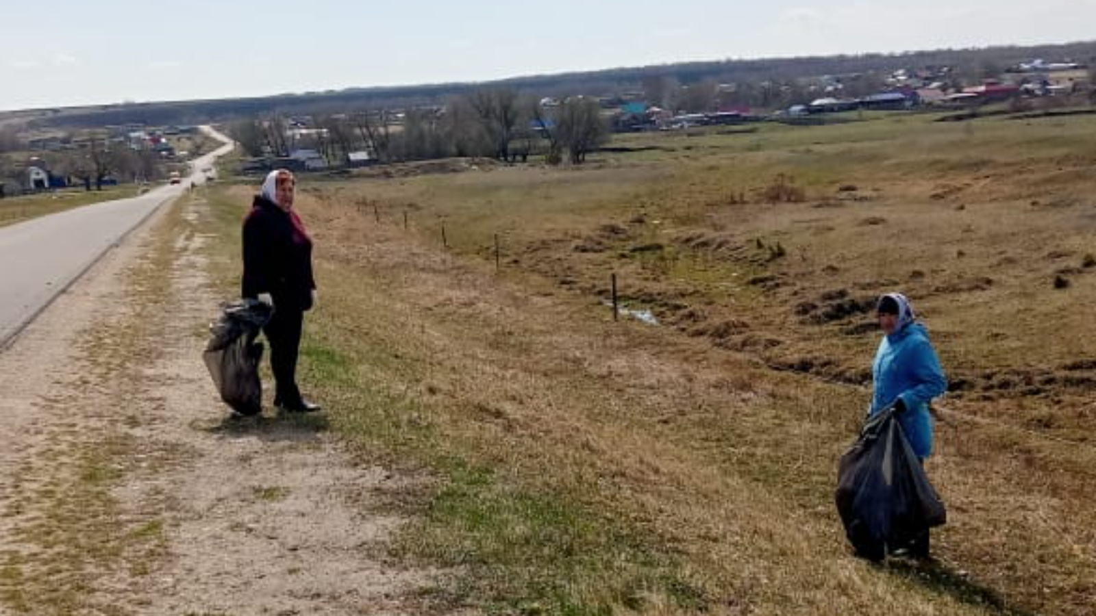 Очистка мусора на придорожной полосе